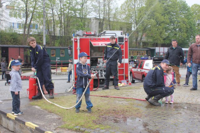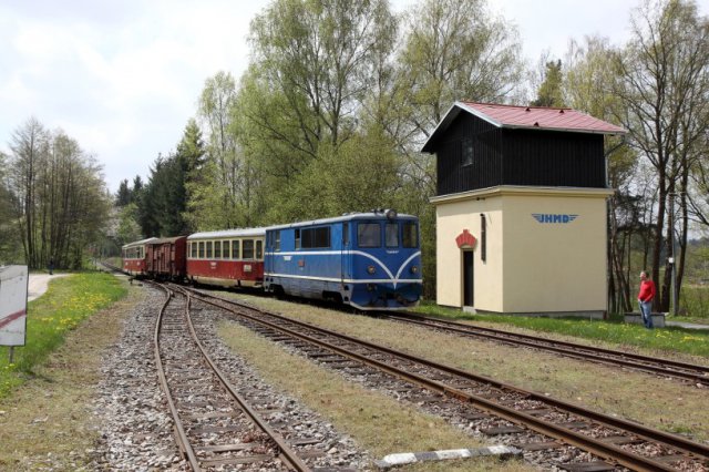 Na území České republiky jsou v současné době tři železniční tratě s úzkým rozchodem, na nichž je provozována pravidelná veřejná železniční doprava. Zatímco lokálka z Třemešné ve Slezsku do Osoblahy je majetkem státu a vlaky na ní provozují České dráhy, zbývající dvě úzkorozchodné tratě jsou soukromé. V roce 1897 došlo k dokončení a zprovoznění 33 km dlouhé tratě z Jindřichova Hradce do Nové Bystřice. Měla rozchod 760 mm, jejím vlastníkem byla akciová společnost a provoz na ní zajišťovaly rakouské státní dráhy. Druhá trať je v provozu od roku 1906, má také rozchod 760 mm, délku 46 km a vede do Obrataně. U jejího vzniku stála sice jiná soukromá společnost, ale i v tomto případě byl provoz svěřen rakouským státním drahám. Situace se nezměnila ani po rozpadu monarchie a vzniku Československa v roce 1918. Jen provoz nově zajišťovaly ČSD a obě tratě zůstaly soukromé až do roku 1925, kdy došlo k jejich postátnění. Ve druhé polovině dvacátého století však začal jejich existenci ohrožovat rozvoj silniční dopravy. Neustále se opakující návrhy ukončení provozu a likvidaci obou lokálek ukončila až jejich privatizace v roce 1998. Tehdy je převzal soukromý podnik Jindřichohradecké místní dráhy, a. s. (JHMD). Následovaly velké investice do infrastruktury a opravy budov i vozidel. Kromě pravidelné dopravy začal nový majitel na obou tratích provozovat velmi populární jízdy mimořádných vlaků, vedených historickými vozidly. Po celou dobu existence společnosti si JHMD obsazovaly zvláštní vlaky svým vlastním personálem. Na podzim 2016 kontaktoval její zástupce náš spolek s dotazem, zda by bylo možné zajištění vlakového personálu v dobových uniformách na některé z akcí, plánovaných na sezonu 2017. Nakonec se podařilo dohodnout vhodný termín a naše premiéra na úzkém rozchodu se uskutečnila v sobotu 6. května 2017. Na tento den připravily JHMD ve spolupráci s Českými drahami, Správou železniční dopravní cesty a dalšími partnery akci nazvanou Železnice dětem. Ta navázala na předchozí ročníky podobné akce pořádané vždy počátkem června pod názvem Den dětí s párou. Nové pojetí akce a především její termín, přesunutý na začátek května, ji umožnil spojit se zahájením sezóny parních vlaků 2018. V areálu obou jindřichohradeckých nádraží byl připraven pestrý kulturní program. Nejmenší děti se mohly do sytosti vydovádět na dvou skákacích hradech, zatímco větší vyzkoušet jízdu na drezínách, zahradní železnici nebo shetlandských ponících. Program zahrnoval i ukázky vojenské, policejní a hasičské techniky nebo předvedení činnosti statického parního stroje. Zájemci o železniční techniku mohli navštívit přilehlé lokomotivní depo. Program zpestřila i taneční, hudební a filmová představení. Hlavním bodem programu se samozřejmě staly jízdy zvláštních vlaků. První odvezla v 10.00 hodin historická motorová lokomotiva T 47.05 a jeho cílem byla stanice Lovětín, ležící na trati do Obrataně. V lovětínském depu si mohli cestující prohlédnout parní i motorové lokomotivy. Mimořádný spoj, jehož krátká trasa vyhovovala především návštěvníkům s nejmenšími dětmi, zavítal do Lovětína hned dvakrát, neboť jeden pár vlaků byl vypraven dopoledne a druhý odpoledne. Největšímu zájmu veřejnosti se těšil tradičně zvláštní vlak vedený parní lokomotivou U 37.002. V 10.44 vyjel na trať do Nové Bystřice a většina míst v jeho soupravě byla vyprodána nebo rezervována již několik dnů před odjezdem. Na trati vedoucí malebnou krajinou se nachází velké množství zajímavých míst, například známá zastávka Kaproun. Ve stanici Kunžak-Lomy, kde proběhlo křižování s pravidelným osobním vlakem, měli cestující možnost shlédnout malou muzejní expozici nazvanou Zajištění traťového provozu. Zcela nové muzeum úzkorozchodné železnice z Jindřichova Hradce do Nové Bystřice, která letos v září oslaví 120. výročí zahájení provozu, zřídily JHMD v suterénu výpravní budovy konečné stanice této dráhy. Nezbývá tedy než doufat, že se všichni návštěvníci akce vraceli domů spokojeni a že spolupráce navázaná mezi našim spolkem a JHMD bude pokračovat i v následujících letech.