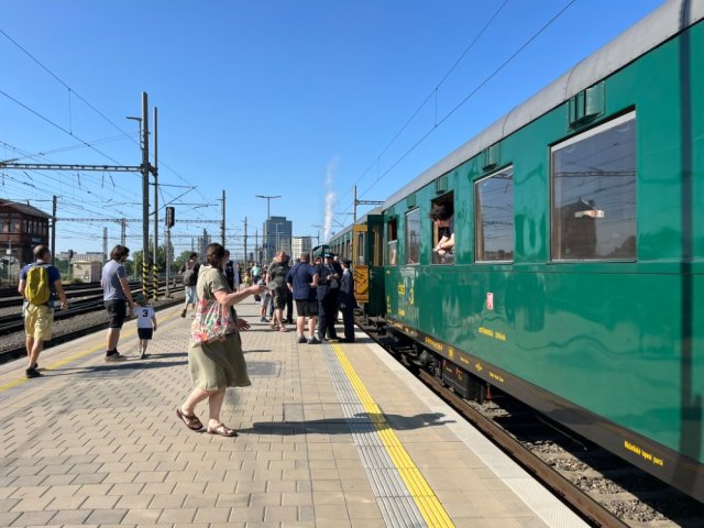 Na přelomu měsíců května a června probíhá v jihomoravské metropoli mezinárodní soutěžní přehlídka ohňostrojných show Ignis Brunensis. Závěrečným a bezprostředně navazujícím bodem programu je tradiční víkend dopravní nostalgie, který v roce 2025 připadl na sobotu 14. a na neděli 15. června. Stejně jako v předchozích letech pořádala tuto akci společnost Kordis JMK, která organizuje pro Jihomoravský kraj provoz Integrovaného dopravního systému, ve spolupráci s Dopravním podnikem města Brna a Regionálním obchodním centrem Českých drah v Brně. V rámci velmi populární akce se tak po oba víkendové dny v ulicích jihomoravské metropole opět objevily historické tramvaje včetně parní Caroline z roku 1889, trolejbusy a autobusy. Nechyběly samozřejmě ani zvláštní vlaky, jejichž jízdy naplánovali pořadatelé na sobotu 14. června 2025. Do čela soupravy historických osobních vozů bývalé třetí třídy se tentokrát postavila parní lokomotiva 525.101 z roku 1956, které na konci vlaku vypomáhala jako postrk historická motorová lokomotiva T 478.1002 z roku 1964. V soupravě byl zařazen i bufetový vůz a služební vůz uzpůsobený pro přepravu kočárků. Dva páry zvláštních vlaků zamířily z brněnského hlavního nádraží do Zastávky u Brna. V cílové stanici se mohli návštěvnicí svézt úzkorozchodným vláčkem do Muzea průmyslových železnic s možností prohlídky jeho expozice, nebo přestoupit na historické autobusy, které je odvezly do Muzea hornictví a energetiky v Oslavanech. V obou případech bylo možné po prohlídce expozic a návratu do Zastávky u Brna odcestovat zvláštním vlakem zpět do jihomoravské metropole. Členové našeho spolku zajistili ve zvláštních vlacích personál v dobových stejnokrojích z poloviny sedmdesátých let dvacátého století. Pořadatelé vyhodnotili akci jako velmi úspěšnou, neboť se naprostá většina jízdních dokladů prodala již před termínem jejího konání v předprodeji. Na základě pozitivních ohlasů ze strany veřejnosti i regionálních médií předpokládáme, že se víkend dopravní nostalgie uskuteční v podobném rozsahu i v příštím roce.