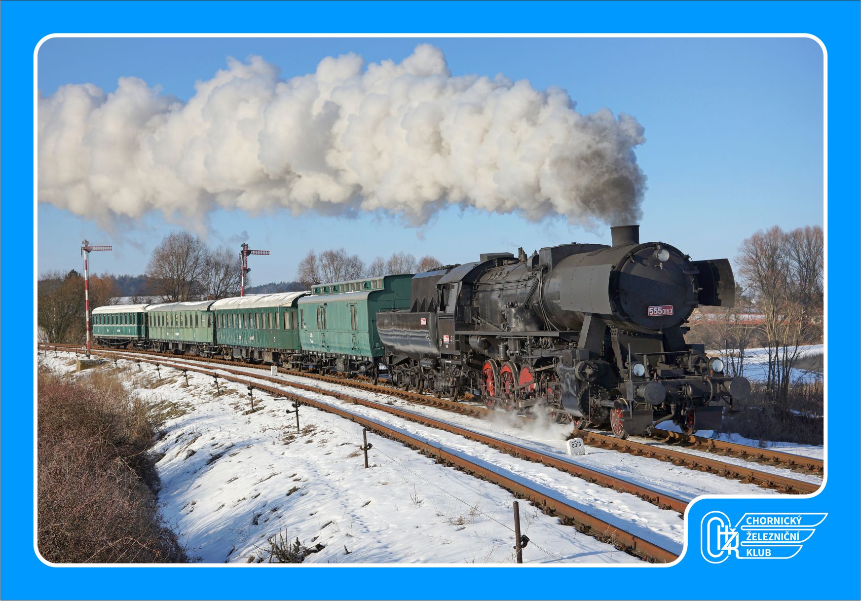 popis: Pohlednice s fotografií parní lokomotivy 555.0153